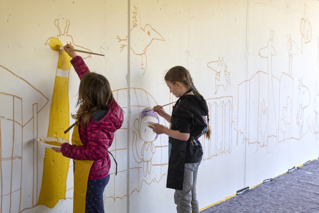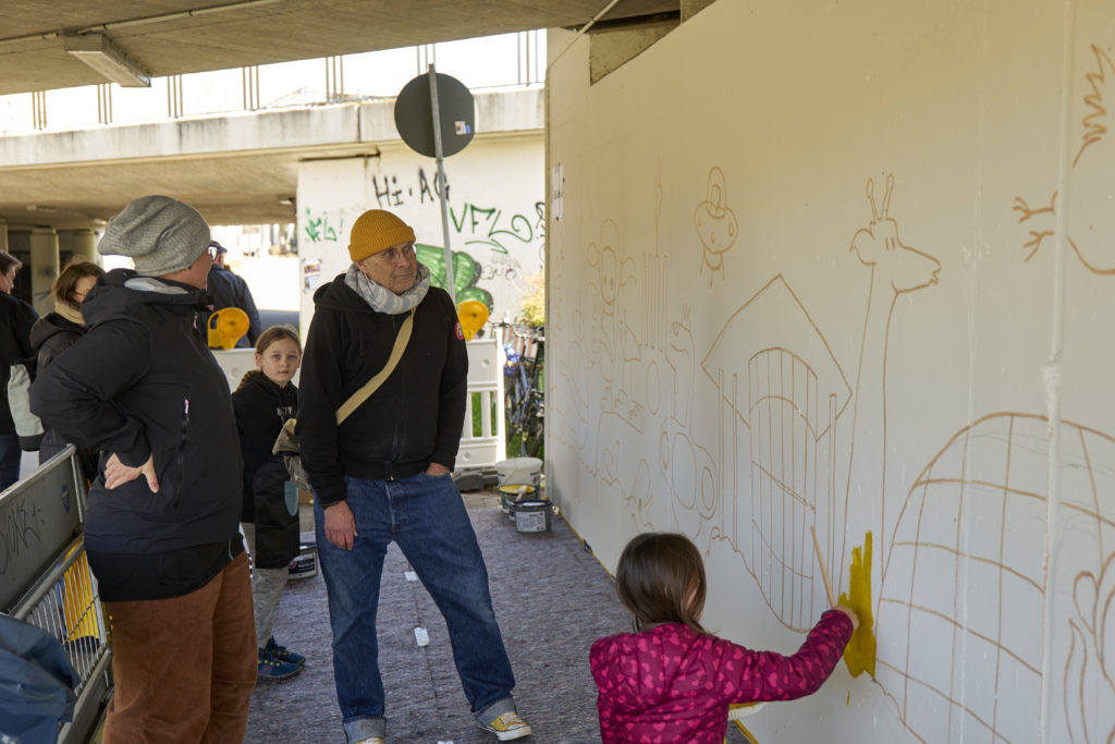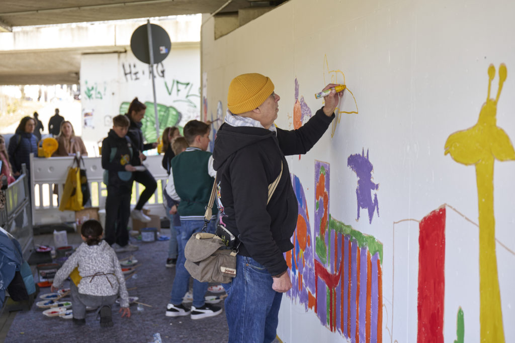 Ein besonderer Fokus lag in diesem Jahr auf dem Kulturtunnel. Die Unterführung, die die Porschestraße mit dem Bereich rund um Planetarium und Theater verbindet, wurde erstmals gemeinschaftlich gestaltet. Unter Anleitung des Künstlers Ali Altschaffel verwandelten Kinder und Erwachsene die weißen Wände in ein farbenfrohes Gesamtbild.
