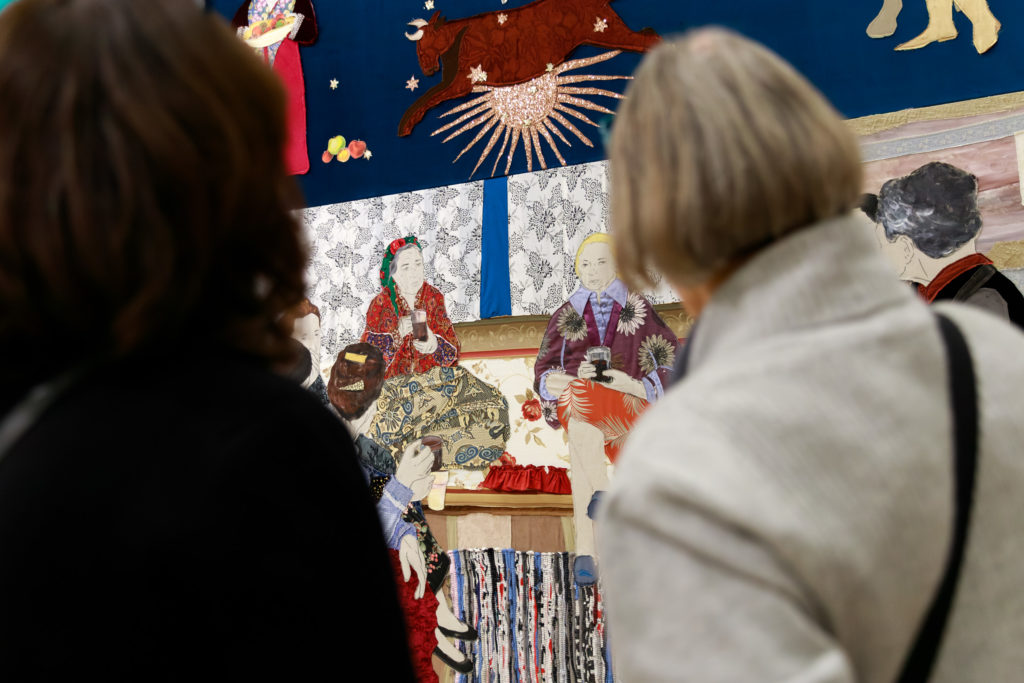 Bei der Eröffnung am 21. November füllte sich das Museum früh mit Besucherinnen und Besuchern, die neugierig auf die Künstlerin waren – und Mirga-Tas nahm sich Zeit für Gespräche, Blicke hinter die Kulissen und viele herzliche Begegnungen. Es lag eine besondere Energie im Raum: ein Gefühl von Nähe, Respekt und gegenseitigem Interesse. Die Arbeiten aus dem Zyklus Re-enchanting the World, mit denen sie 2022 auf der Venedig-Biennale internationale Aufmerksamkeit erlangte, entfalteten in Wolfsburg ihre ganze Wirkung. Viele Gäste blieben lange vor den einzelnen Werken stehen, entdeckten immer neue Details, Stoffe, Muster und Geschichten.