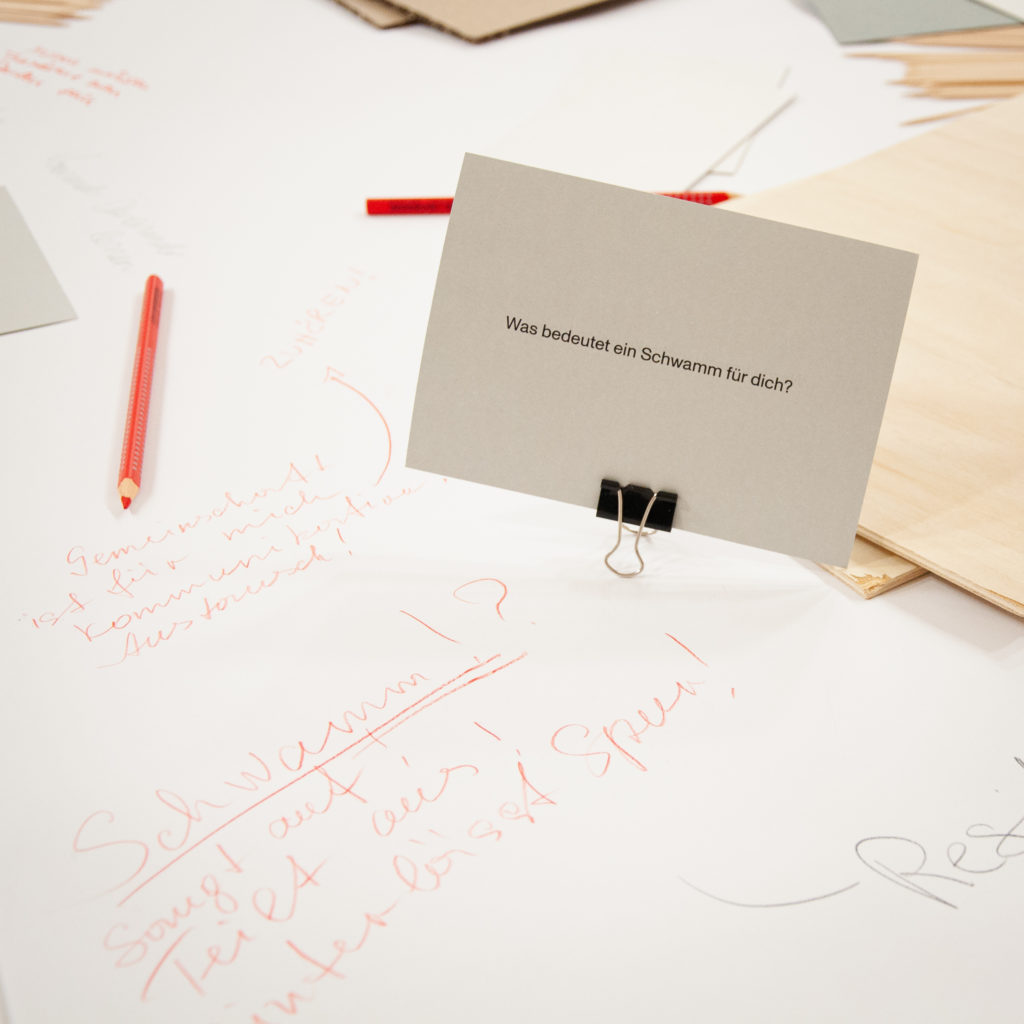 Zudem zeigten wir erste Ideen und Modellentwürfe für eine mögliche architektonische Übersetzung des zentralen Motivs: die Open Area als „Schwamm“ – ein durchlässiger, anpassungsfähiger Ort des Austauschs und der Verbindung am Kunstmuseum Wolfsburg, mit sichtbarem Bezug zum umliegenden Stadtraum.